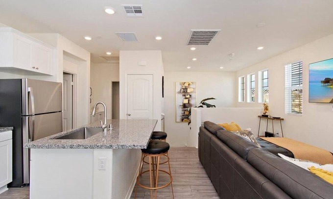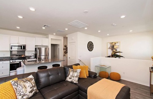 Relax in nicely furnished with gold and modern style furniture and decor. It is one bedroom with spacious living room and kitchen with all the cookware needed for short or long term stays. Has also private patio with partially Mountain View, also attached garage with direct access to the condo.