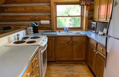 The main cabin has 1 bedroom and a loft (sleeps 4), full kitchen, living room and bathroom. The kitchen is well supplied with cooking equipment, dishes flatware, coffee maker, and Keurig. The second cabin is two parts with separate entrances. The upper part of the cabin is a game room with a blow up mattress that sleeps 2. The lower part of the cabin is a one bedroom (sleeps 2), bathroom and laundry. All beds have European down comforters. The master has a cool top Tempur-Pedic mattress and the others are high quality pillowtop mattresses.