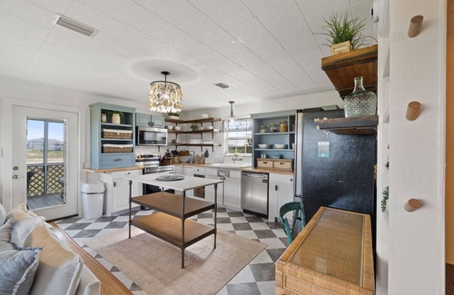 Inside, enjoy a fully equipped modern kitchen with stainless steel appliances, quartz countertops, and an open-concept living space designed for comfort and connection. The main bedroom offers a plush king bed, while the second bedroom also features a king. The third bedroom is a kid-friendly haven with two small twin beds and a twin bunk. A full sleeper sofa in the living room allows Latitude Adjustment to comfortably sleep up to 10 guests. Whether you're planning a fun-filled family vacation or a laid-back beach escape with friends, this home is the perfect base for making memories.