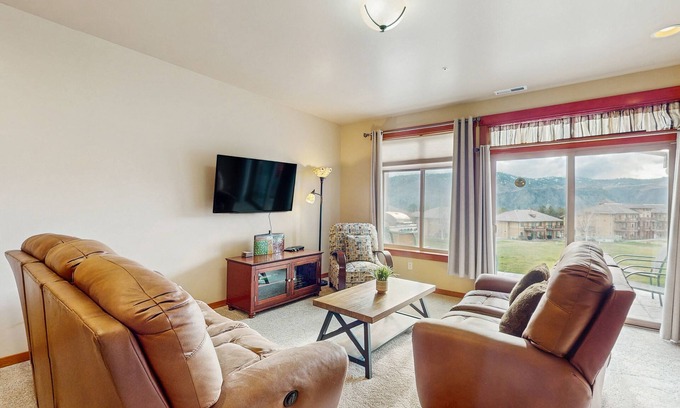 Experience the best of Desert Canyon at this spacious, golf course-adjacent condo. After a day out, enjoy a relaxing afternoon barbecuing on the furnished patio overlooking the third fairway and the Cascade Mountains. New A/C installed in 2025 for your comfort!