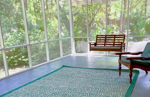 This one-story home offers a beautiful mid island location with a large screened in porch, fenced yard with deck and island breezes. You will love the outdoor shower, fire pit, grill and large oak shaded private yard. Appliances and conveniences include laundry room with washer and dryer, fully equipped HVAC, ceiling fans throughout, Wi-Fi and cable, 3 large TVs, and 2 car garage. The home is stocked with fun items for both indoor and outdoor fun. Ping Pong Table. Outdoor extras include basketball, bikes, volleyball set, beach toys, croquet, firepit and fishing equipment. There are board games, books, and puzzles for Indoor play. Baby crib. St. Simons has miles of paved bike paths and easy, flat terrain giving a leisurely car or bike ride to the beach or charming village 4.6 miles. Numerous hiking, biking, museums and nature trails, and parks. Enjoy St. Simon's eclectic shops, surfing, classic fishing pier, and stretches of spectacular beaches. There are many waterfront restaurants with live music and great seafood. This natural island environment retains the charm of old coastal towns because you won't find high-rise condos and hotels that loom over the beaches here. Just a short walk to the Sea Palms Resort with its 18 holes of championship golf and splendid restaurant, Sago, and many other island favorites. Minutes from the beach and 15 minutes to the much-loved Pier Village and the St. Simons Lighthouse. Jekyll Island is the neighboring island offering a water park, Georgia Sea Turtle Center and Driftwood Beach.