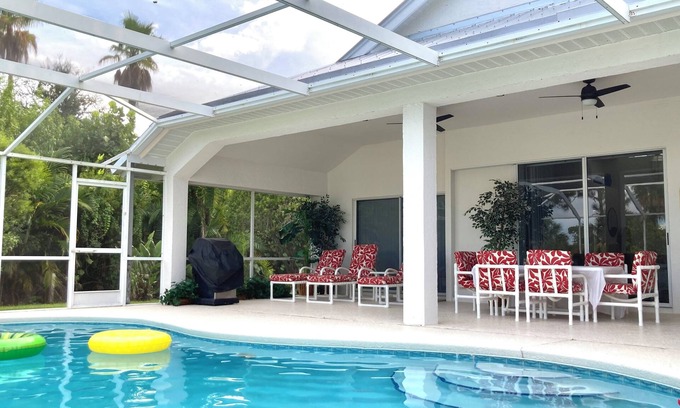 Beautiful newly renovated 3 bedroom 2 bath villa with private pool in sunny Florida located 2 hours from Miami and Orlando. Relax by the pool and enjoy tropical bird on the golf course. The house is located steps away from altitude Academy. In winter time, renters can request the pool to be heated. a $15/day will be charged separately if you choose to do so.