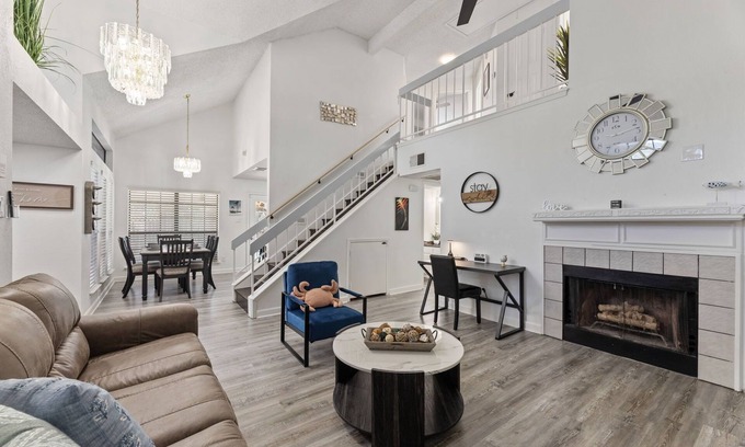 Enjoy your private backyard paradise, where you can swim, play mini-golf, toss axes, and unwind by the fire pit. Inside, the home features modern decor, ample space, and all the essentials for an stress-free stay.