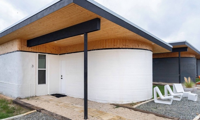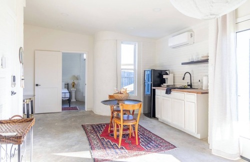 Built using innovative 3D concrete printing, it features a modern, efficiently designed studio layout with one Queen Bed, Full Bath, and Kitchenette with microwave and refrigerator. You’ll also have WiFi, a full bathtub for soaking, and a stocked Keurig to start your mornings off right.