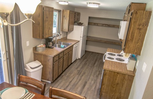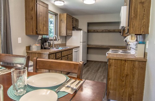 Spend your days discovering the natural beauty of the area before heading back to Gone Coastal. With over 900 sq ft, you’ll have plenty of room to move about without losing that quaint, cozy atmosphere when its time to cuddle up on the couch next to the wood fireplace. The duplex shares the garage and pantry/kitchen wall so there are less noise concerns while sleeping soundly on the other end of the house. It is located on a family-friendly loop community and just a short walk away is an idyllic trail that borders Elk Creek.