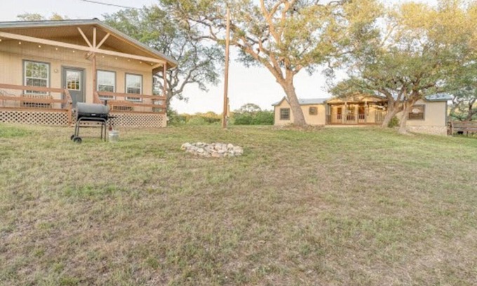 If you're looking to escape the hustle and bustle of big city Gone Fishin' at Lightning Bug Springs is the perfect destination; 15 acres of beautiful property nestled along the banks of the Dry Frio. Don't let the name "Dry" fool you, though. There is a quaint swimming hole just steps away. The property offers a swimming pool, a large fire pit, volleyball net, tire swings, horse shoes, soccer goals and large shade trees for enjoying nature. In the evening watch the sun set while the deer graze in the field.