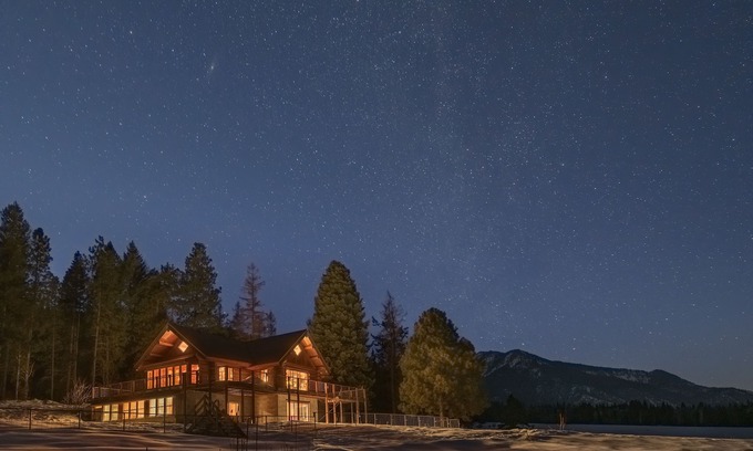 This, one of a kind, rustic log home tucked into the base of the Elkhorn Mountains is anything but rustic when it comes to amenities. It is a large (5200 Sq. Ft.) home located on 250 acres bordered by Wallowa Whitman National Forest. There is scenery, hiking, snowshoeing, wildlife and big starry skies right out the backdoor. You are within minutes of The Elkhorn Crest Trail and many Wilderness access options. Anthony Lakes ski area is 19 miles away. It is a 10 mile trip into Historic Baker City.