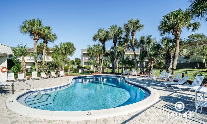 In the heart of Destin/ Miramar Beach lovely townhose is ready for you and your loved ones, 2 Bedrooms 2 1/5 baths ,with a fully fenced back yard and a pool is waiting to host you. Paid Laundry room is by the pool.