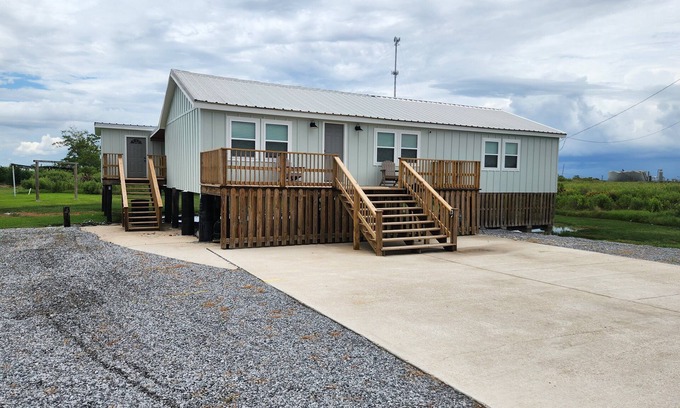 Welcome to Good Times on 56, we are located just before the Robinson Canal bridge; boat launch is a block away from our location. This is your home away from from home, 3 bedroom 2 bath, sleeps 7 people comfortably, this camp offers WiFi, tank less hot water heater, Sonos speakers, 65 inch TV in the living room, along with 43 inch TV in each room and a covered back porch to sit back and relax with a cold cocktail. Have fun with the whole family at this stylish place.