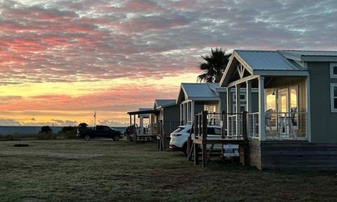 Roomy house with a cottage feel and amazing views! Enjoy beautiful sunrises over the water from your front porch that overlooks St. Charles Bay, as well as lovely sunsets from the west. It's the perfect spot for watching the Whooping Cranes (October - March), Sandhill Cranes and Pink Spoonbills feed around the house or fly over to the pond across the road! Deer and other wildlife feed all around this wonderful natural setting! This amazing property is located just a few minutes away from St. Charles Bay boat launch! There is a nicely appointed king-size main bedroom with a queen-size sofa sleeper in the common area! Behind each house you will find a charcoal grill and there is a fish cleaning station behind the shed.