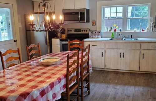 The kitchen has a new tile floor, all new appliances including refrigerator, range/oven, over-the-range microwave, coffee maker, blender and toaster oven. The kitchen has a long Stickley table and chairs. Located just off the kitchen is a screened-in front porch for relaxing on those summer days and nights.