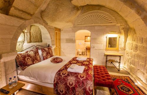 Located in Goreme, Goreme Mansion has a stone-built structure with a unique architecture. The mansion offers cave rooms with modern amenities. The rooms of Goreme Mansion are traditionally decorated. Each room includes a flat-screen TV and a private bathroom. Some rooms also offer a spa bath. Daily breakfast is served in open buffet style. The restaurant offers Turkish cuisine. Goreme Open Air Museum is 1.2 mi from the hotel. Nevsehir Cappadocia Airport is 24 mi away.