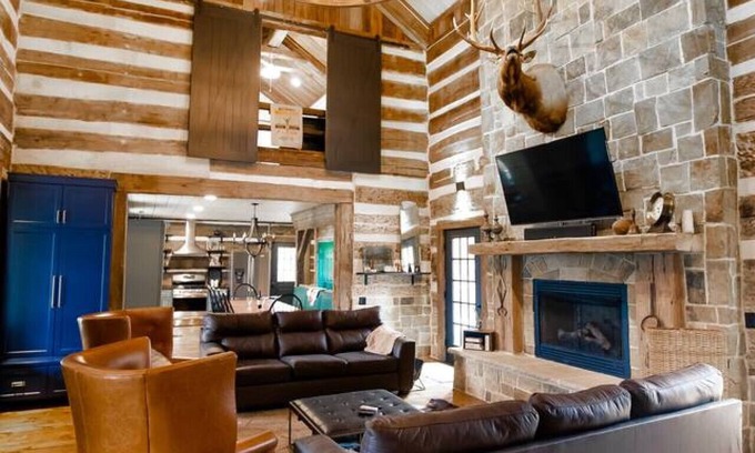 This historic log cabin has 3 bedrooms that have their own full bathrooms, personal TV, as well as large closets. This Beautiful Cabin has two fireplaces, one that sits in the heart of the home nestled on the main floor. Another fireplace outside on the back porch with additional outdoor seating for a night full of stars and warmth including a fire pit and girl! The kitchen is fully function and has most modern conveniences to prepare large family dinners with a large family table. The downstairs has a television couches and comfortable lounging. Laundry is onsite and available if needed. The front porch is spacious with rocking chairs, porch table and chairs for a lovely meal outside . This is the perfect space for any Getaway!