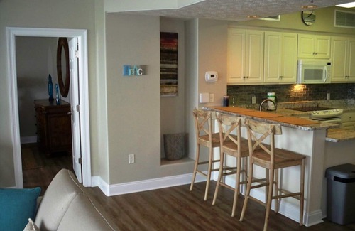 Exquisitely renovated and beautifully appointed unit sits directly above the sugar white sands with awe-inspiring vistas. This two-bedroom, 8th-floor, Gulf Front condo has platinum-grade furnishings throughout -- from the beautiful wood floors, to the granite countertops, the eye-catching kitchen back splash, HDTVs, new high-end furniture and comfortable bedding, and New Balcony furniture.