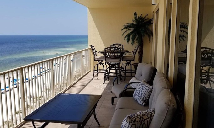 - 3BR Beachfront Condo in PCB! Spacious Balcony, Pool, Hot Tub, Steps to Beach!