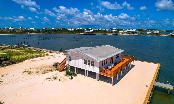Introducing Bay Breeze... the perfect spot for your next beach vacation. Take in panoramic views of Mobile Bay from the expansive decks and all of the windows throughout this home. Bay Breeze is a beautifully decorated 3 bedroom/2 bath private home that was recently renovated with all new furnishings as well as a new sea wall/bulkhead; perfect for a day filled with good fishing, crabbing or just chilling by the water. Enjoy cooking your fresh catch in the large gourmet kitchen, which offers tons of seating and room for the entire family to join together. Looking for some beach time? You are just a short, easy walk to the beautiful Gulf of Mexico (only apx 2 blocks). What an amazing, unique home!