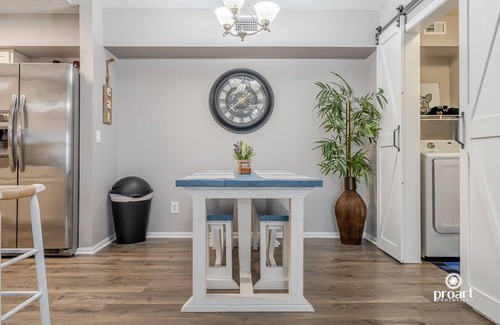 Gorgeous 3 bedroom 2 full bath brand new 2022 remodeled condo with luxury vinyl plank throughout, stainless steel Frigidaire appliances and high ceilings. Private balcony, free Wi-Fi, free parking, 5 minutes away from the public beach. 65 inch LG 4K SmartTV in LR, 4K TVs in every bedroom, workspace desk, in unit new Samsung washer and dryer, close to shopping, restaurants, parks, entertainment etc.