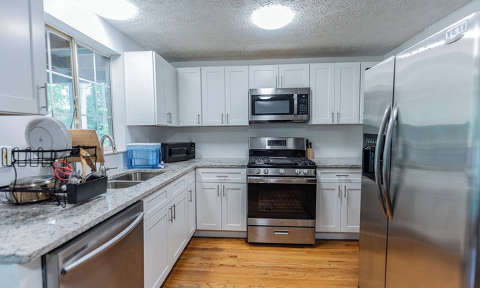 Discover the ultimate Stone Mountain getaway in this stunning, fully renovated 4-bedroom, 3-bathroom home, perfect for groups of up to 20! Ideal for family reunions, friend trips, or large gatherings, this spacious retreat features 4 bunk beds, 2 sofa beds in the vibrant living room, and a dining table that seats 12 for unforgettable meals together.
