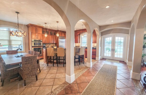 An open, flowing, light filled floor plan and spacious great room offer plenty of room for your whole group. A large well-equipped kitchen with granite countertops, stainless steel appliances and island seating for 4 makes whipping up everything from early morning French toast to a late-night omelette easy and fun.