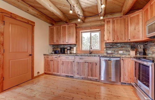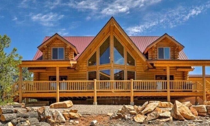 Bring your party to enjoy this immaculate mountain paradise with 10" log and huge character logs, located just 10 minutes from Zion National Park east entrance. Property is located on the Ponderosa Resort, where guest have access to amenities, such as swimming, tennis, zip-lining, mini-golf, horse riding and ATV rentals. With Bryce Canyon is 1 hour away, and Lake Powell and the north rim of the Grand Canyon within a 2-hour drive, the opportunities for outdoor recreation are endless. There isn't a better location to launch your next getaway, as this 5-bedroom, 3.5-bath vacation rental also provides up to 13 guests with Ponderosa Resort access!