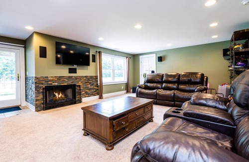 If you aren't enjoying the outdoor area, the finished walkout basement includes a pool table, ping pong table, Arcade game, Smart TV and game room! The home is large enough to spread out, 5 Smart TVs for rainy days or an evening movie night!