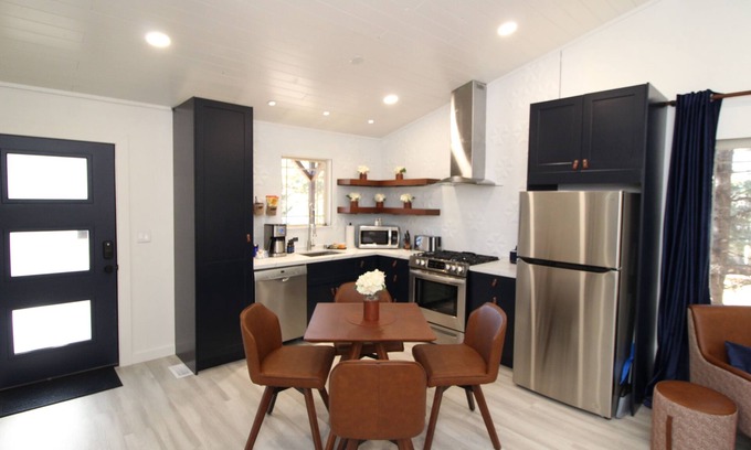 Your newly remodeled cabin provides the perfect place to unwind and relax. This cabin has been remodeled from head to toe and features new stainless appliances, new cabinets, quartz countertops, leather furniture, electric fireplace, towel warmer, premium linens and new kitchen items including new stoneware dishes, glasses, and cooking/bakeware.