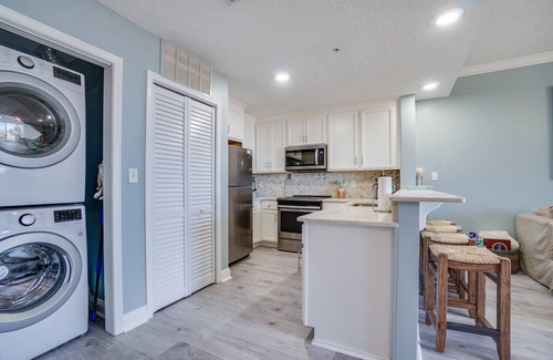 There is a new front loader washer/dryer in the laundry closet. The open living/kitchen includes four barstools for bar seating, a dining area, and a gulf view living room that includes a queen sleeper sofa with a memory foam mattress. The balcony with those amazing views will be your favorite spot - it has two Adirondack chairs and a large dining table. There is a large smart TV and board games for the family; lots of extra blankets and two cozy sitting areas.