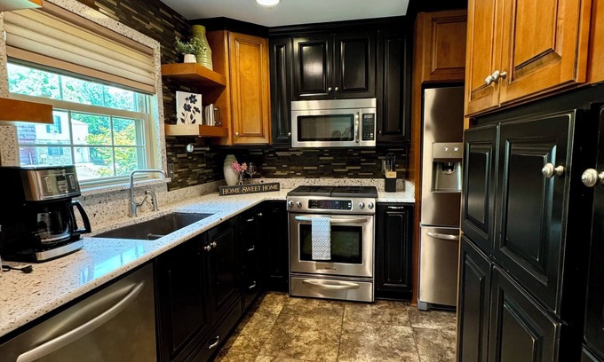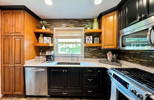 The upstairs feature 2 large sized bedrooms with comfortable queen beds and the full bathroom, all very tastefully decorated by interior designer owner. We’re local so help is never too far away if additional requests are needed. So stop your search and click on us, you won’t regret it!