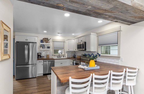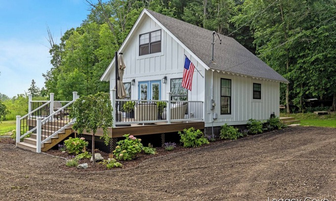 Enjoy this beautiful cottage with 4 beds, 1 bath, a fully stocked kitchen, full size washer and dryer, pontoon boat, kayaks, stand up paddle boards, lake access, fire pit, huge deck, and more!