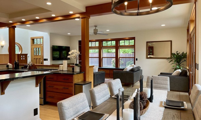 Inspired by the Oregon landscape, this beautiful craftsman home is the perfect place to stay while you explore Eugene. You will be delighted by this home's fantastic location, only steps away from the University of Oregon campus, Hayward field, and charming neighborhood restaurants. The interior of the home was recently updated and is in process of being furnished - more photos will be posted ASAP as furniture comes in! In the meantime, please reach out with any questions. Ready for booking starting May 1st.
