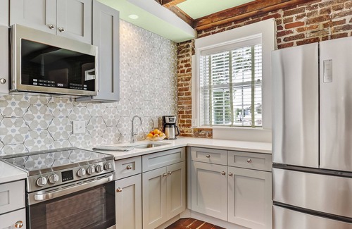 Classic rustic meets city modern in Gordon Inn Tree Top! This stunning brownstone located in the heart of Savannah's historic downtown has been fully renovated for a fresh, designer-influenced look that stays true to the authentic soul of the property. This one-bedroom, one-bathroom Savannah vacation rental comfortably accommodates up to four overnight guests. It is located within walking distance of the city's premier shops, restaurants and attractions. In addition, views of Chatham Square are visible from inside the home. Guests of the home enjoy perks like Wi-Fi, new appliances in stainless steel and exclusive access to a resort-level pool located in nearby Tybee Island. It all comes together to make Gordon Inn Tree Top one of the best Savannah vacation rentals available. The home also boasts a quiet, private courtyard that is perfect for quiet contemplation over coffee or mint juleps!