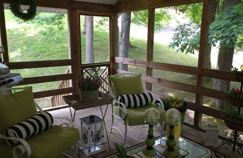 Outside, the front porch offers comfortable outdoor wicker seating, while the screened-in back porch is a tranquil oasis, perfect for morning bird-watching or evening relaxation. Equipped with a double fan, stainless steel grill, electric fireplace, and a recently added firepit with Adirondack chairs, the outdoor spaces provide ample opportunities for entertainment and enjoyment.