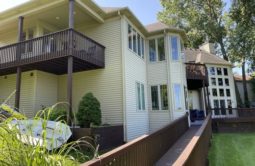Have the whole family out, up to 4 couples or just the 2 of you. Of course, also perfect for the business minded, bay-window work desk on lower level with scenic view. Plenty of room for gathering as well as multiple hidden places for alone time. Amazing views of the lake from different areas of the house. Including a full lower level deck, a main floor deck with BBQ (main-line gas, no tanks needed), side deck off the Master bedroom for privacy. 3 fireplaces for the chilly nights, 1 in the Master bedroom, 1 in the main living room and the last on the lower level.