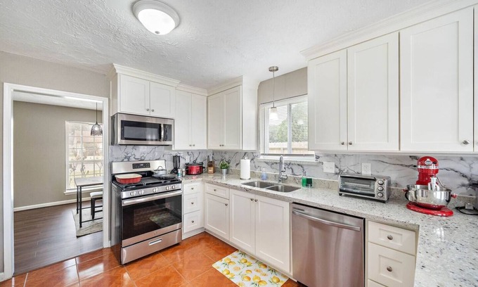 This stylish home is located just minutes from the heart of Houston with easy access to the main highways, top restaurants, and spectacular shopping. With 2000 sq. ft. of space, 4 bedrooms, and 2 bathrooms, it's perfect for families or groups of friends. Enjoy the open concept layout, gourmet kitchen, spacious patio, and backyard. Business travelers will love the dedicated office.