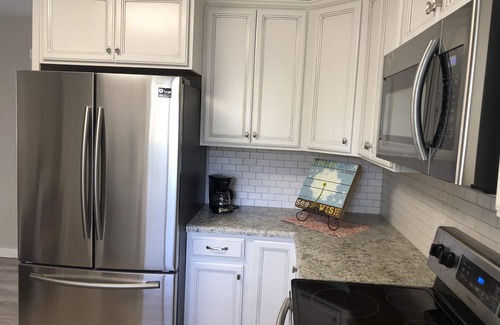 We just finished up our fully renovated 1200 square foot three bedroom home. It boasts all new floorings, paint, cabinets, tile and appliances. Everything is new but the original lumber in the walls. The master bedroom offers a Queen bed and room for our blow up mattress. The second bedroom also offers a queen bed and room for our blow up mattress. The third bedroom offer a bunk bed with a full size mattress on the bottom and a twin on the top. Enjoy our comfy furniture and trendy decor while staying in our fun little town. We are in an area that is the cross roads to just about everything. Our home offers card games, board games, wifi, and is just a few houses away from the elementary school playground as well as our recreation center. The kitchen is stocked with all the cooking pans and utensils you will need, as well as coffee.