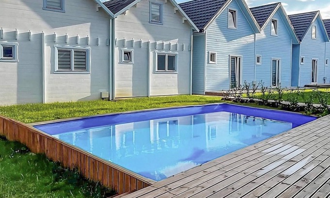 Enjoy this wooden house with private pool and whirlpool with your family.