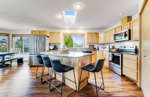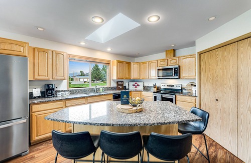 Enjoy your time in the lap of luxury at this gorgeous lake-view home in Manson! There's a huge lawn where you can play frisbee, a seasonal private pool, a hot tub, and a game room - the only trouble is, you may never want to leave! The living spaces are inviting and spacious, with warm, dark colors and lots of natural light. Curl up on the sectional sofa to watch a DVD or Blu-ray, or grab a book from the shelf and get in some quiet reading time. A separate family room has a pool table, foosball table, and another flatscreen TV. If you're feeling competitive, challenge the others to a board game. With such a gorgeous kitchen at your fingertips, it's time to try something new. Look up an exciting new recipe over the WiFi, then break out the mixer and blender and start the prep. A coffeemaker helps keep you energized, and the dishwasher takes care of the cleanup. Beautiful granite counters offer plenty of chopping space, and there's a breakfast bar so that people can keep you company as you work.