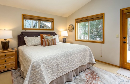 This beautiful air conditioned vacation home has 4 bedrooms, 3 bathrooms, and sleeps 10. After a long day outside enjoying the slopes or out floating the river, sink into the couch and watch the roar of the fire from the gas fireplace or relax and play some games with your family and friends. With vaulted ceilings, ample light, and granite counters, the kitchen makes for a lovely space to cook and entertain in. With two sinks, attractive wooden cabinets, and lots of space, food preparation is easy and pleasant. Outside, there's even a gas grill where you can prepare a family feast.