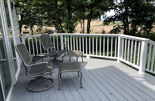 The kitchen is fully equipped with all appliances, including a wine cooler. There is a dining room table which can seat 6 people. This house has a living room with a wood-burning fireplace. In the living room there is a 42' flat screen TV with a DVD player or you can simply sit on the couch and enjoy the view of the lake. Once you walk outside you will be on the large deck that has a propane burning grill. After you have finished grilling you can go to the fire-pit that is in the back yard and enjoy a delicious s'more.