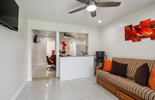 Step into this newly renovated one bedroom, one bathroom apartment in a GATED community. Its kitchen is fully equipped to cook simple meals or even bake anything you feel like. You will also be able to come back home with clean clothes, feel free to use the washer and dryer in unit. Perfect for a weekend getaway or longer if you'd like to stay to explore the city more.