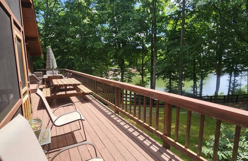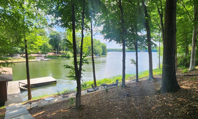 It's like having your own private waterfront park! The gorgeous views are immediate and you won't believe the beauty inside! 4 Bedrooms to sleep the whole crew and living space galore - upstairs, downstairs and outside too. The walkway to the lake was just completed to ensure an easy walk down to the waterfront offering a private dock and sitting area.