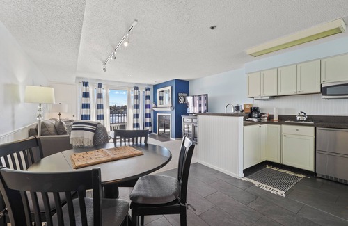 The living room has seating for up to 4 guests, use a complimentary firelog in the wood burning fireplace to set the ambience. And don't forget to enjoy the balcony as the boats sail in and out of Round Lake.