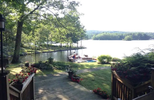 Beautiful lakefront on Roaring Brook Lake, one of NYTimes 'top 10 cleanest lakes' near NYC. Fabulous swimming, boating, fishing, hiking and antiquing 1 hr from Manhattan. 3,200 sq. ft. on 1/2-acre; spectacular views from almost every room; a few steps to the water. Published price is high season: summer, fall & holiday weeks. Fee is 50% off - Nov until mid-May, excludes holidays. High season & holiday min 3-night stay, otherwise 2 nights.