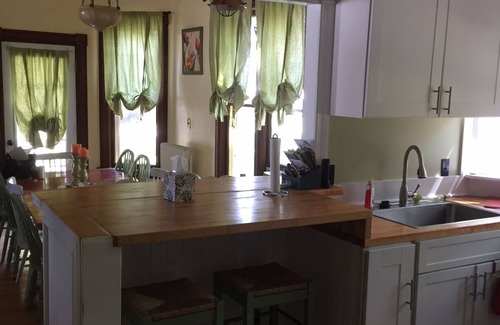 Lovely 6 Bedroom Victorian house for rent in the quaint village of Elberta, Michigan. This is less than two miles from downtown Frankfort and is located directly on the 22 mile Betsie Valley bike trail http://www.betsievalleytrail.org (M-22). Less than a 5 minute drive (or 15 minute bike ride) to Elberta or Frankfort Beaches and Marinas. Walk to the popular wedding venue the historic Life Saving Station, art galleries, waterfront parks and weekly farmers market. Walk a block to wonderful restaurants in Elberta. Try the Lighthouse Café (award winning breakfast) or Conundrum Café for Breakfast/lunch; Mayfair Tavern or the Cabbage Shed for lunch/dinner and night-time entertainment. There are also many wonderful restaurants in Frankfort- a short 5 minute drive or 15 minute bike ride away. The Conundrum Café offers bicycle rentals if needed. There are also plenty of water sport rental spots on the way to Frankfort. You are driving distance to golf courses, wineries, Crystal Mountain, the Sleeping Bear National Lakeshore and all of the adorable towns and beautiful beaches in-between.