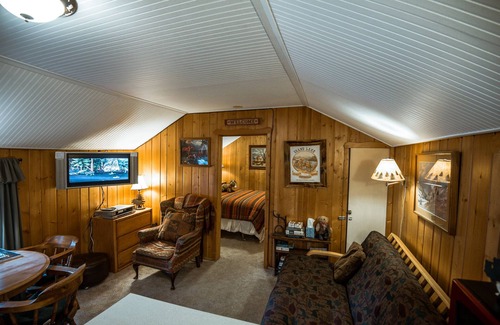 Originally the office of Historic Lemmon Lodge and adjoining a 120 year old building. Converted to a very cozy 1 bedroom 1 bath +1 pull-out in living room (sleeps 4 persons comfortably), kitchen, picture window, gas log fireplace, and large porch. Right near the water and at the edge of town. Walking distance from everything. Internet is included as well as access to an exclusive boat slip (upon request), grills, a horseshoe pit, sand volleyball court, picnic tables, and outdoor fire pit.