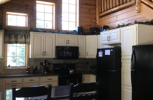 The kitchen at Rustic Retreat gives all new meaning to "fully stocked". There's gadgets and appliances not often found in your typical up north cabin. It has been conveniently layed out with your comfort in mind! In 2018, even a second refrigerator was added to the kitchen! Now there's plenty of space to keep drinks and water bottles cold, and still have room for the groceries.