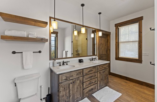 This 5 bedroom / 4 bath 3500 sq ft home prioritizes the communal spaces while including cozy separate spaces for a quiet moment to unwind. Sit on the hearth and take in the crackle from the large fireplace. Marvel at the view and wildlife through the massive windows. Share a late-night conversation on the deck will taking in the breathtaking stars. Relax in the hot tub while watching the sunset on the mountains. Curl up and take in a movie in the family room theater after a day of adventure. Stay cozy on a long winter night with radiant heated floors on the lower level and master bathroom.