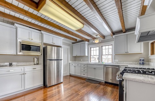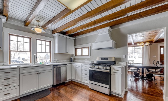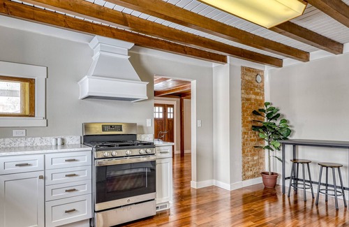 Return to your sweet getaway and fall in love with this home's quaint interior decor and feel. From the moment you step in through the front door, you'll immediately notice this vacation rental's spaciousness, with more than enough room to fit you and your friends. This 100-year-old historic house comes fully renovated with a brand-new kitchen, flooring, and bathrooms. With half an acre of land and wonderful pear trees to decorate it, you can sit out on the patio and gaze out at the rolling snowcapped mountains in the distance and breathe in the fresh, crisp air. Fire up the gas grill and play a game of volleyball using the included net while your meal sears to perfection. Eat outdoors or come inside and warm up with a hearty homemade meal to fill your belly. Afterward, settle down in the game room and challenge your friends to a couple of games of air hockey. End the night gathered around the living room area and stream your favorite movie right from the comfort of your couch. There's something for everyone here!