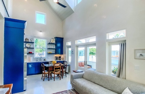 This gorgeous new 2 BR/2 BA guest cottage enjoys an ideal location in the center of the best part of Destin (Crystal Beach) a very short walk to the beach, yet it's private at the same time! If you prefer not to spend your vacation traipsing the halls of hotels or sharing condo elevators with strangers, enjoy this stunning but cozy cottage in its super convenient location! One-half block (less than 5 minutes walk) to the beach--including showers, restrooms, free kids classes—and a lovely cafe, and 2-5 blocks to 3 grocery stores, over 30 restaurants, movie theaters, bowling, kids play area, and more!