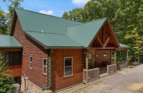 This exceptional cabin is one of the nicest large Cabins you will find in the area! It's loaded with features and amenities including a towering 2 level covered deck and screened in porch!